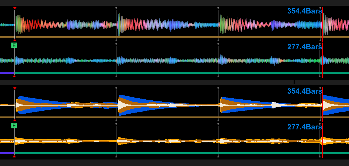 In our post-rekordbox, visual waveform world though? Minimum would be something like track one, with some sort of beat and bar indicator, playing and defining the playhead - the point in time of now.