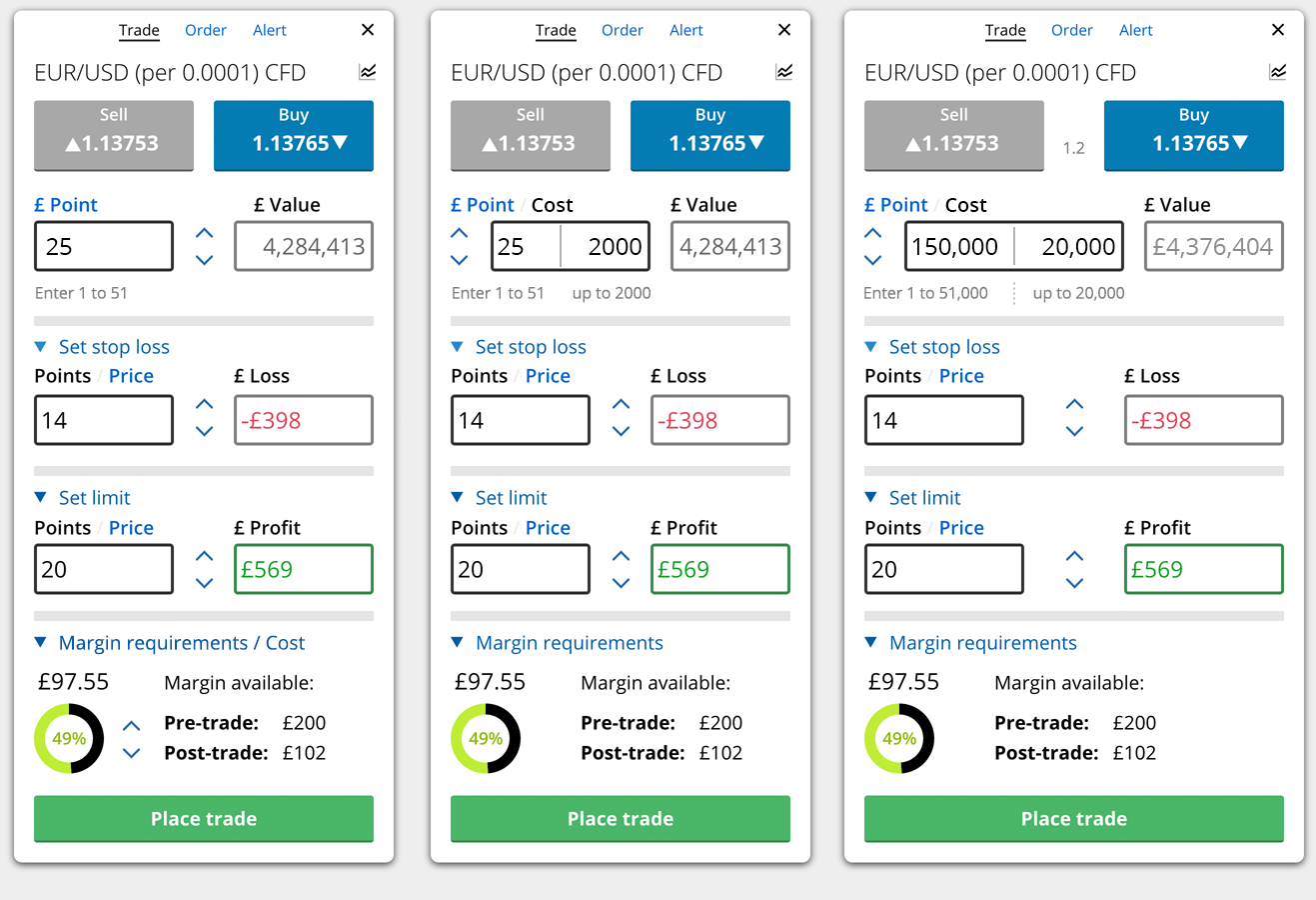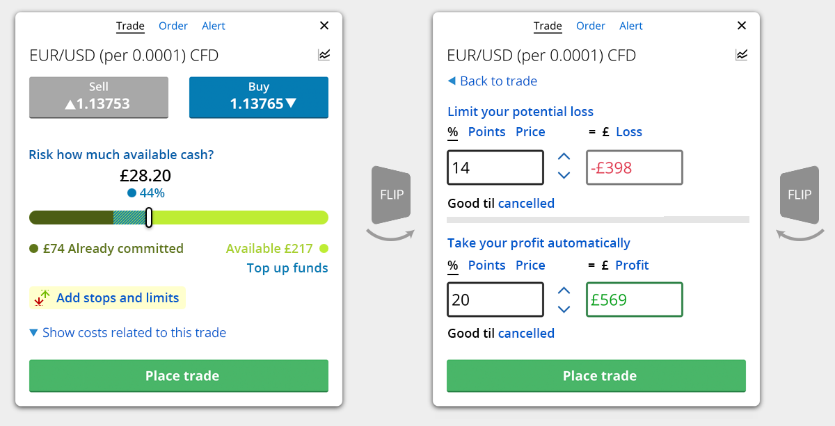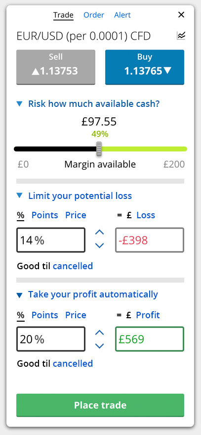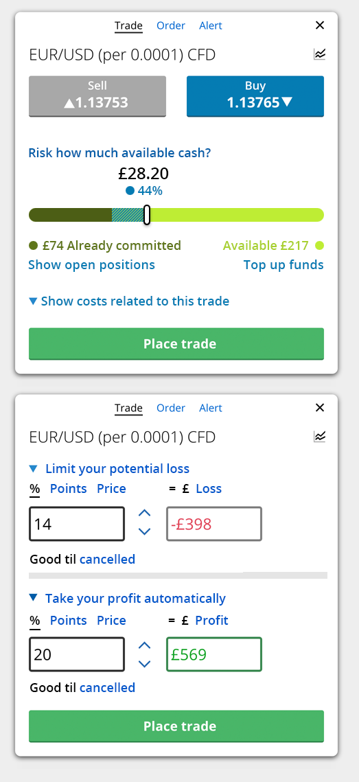 Risk slider, showing comitted margin as well as the desired risk/margin for this new trade. Also, separate step for the stop/limit orders