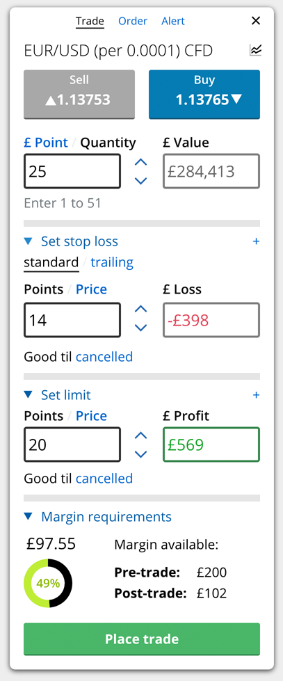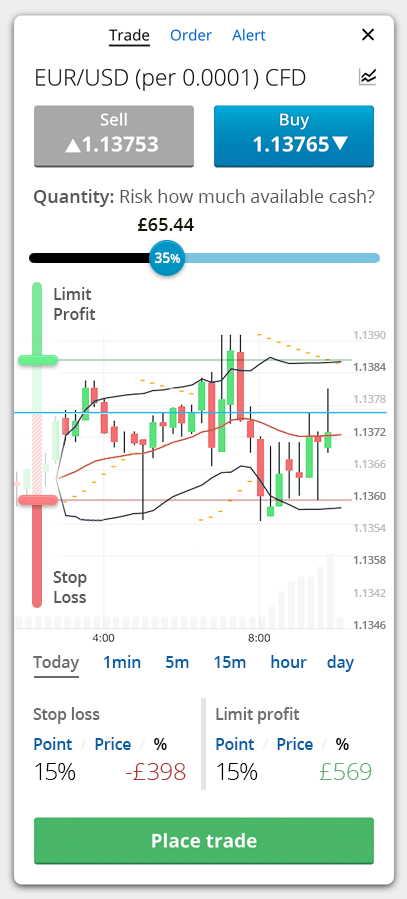 Trade on chart ticket - quantity as risk/margin amount, stop/limit on chart using sliders