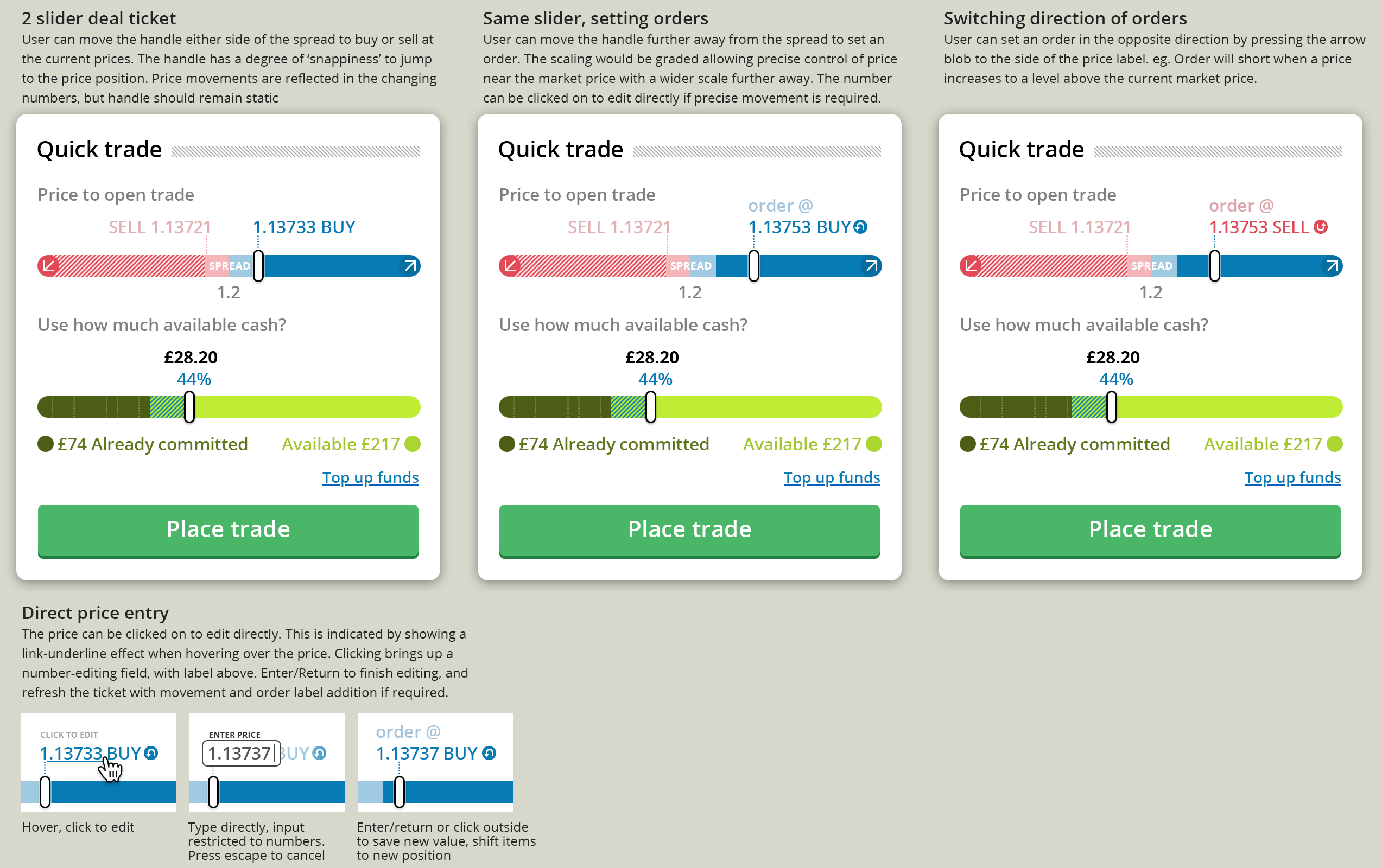 This ticket has a slider for the quantity/amount which is also the trade direction